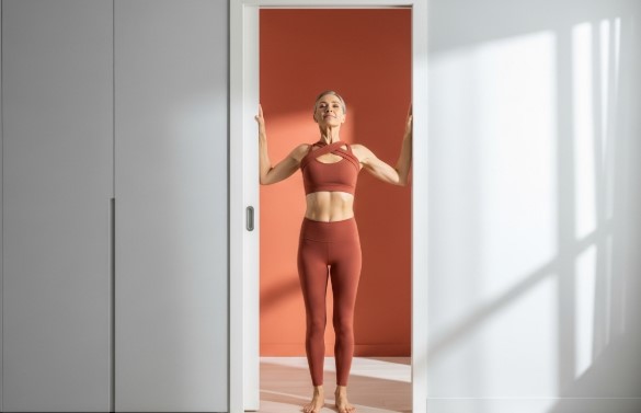 - 가슴 확장 스트레칭: 문틀에 팔을 대고 상체를 앞으로 숙여 굽은 가슴 근육을 활짝 펴주세요.